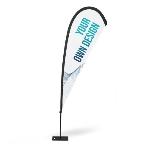 Fly Banner teardrop, også kendt som Fly Banner teardrop eller Beach Flag Teardrop, er kendetegnet ved sin omvendte dråbeform. Denne særlige form gør det mere modstandsdygtigt over for vindpåvirkning ved at reducere friktionsoverfladen. Fly Banner Teardrop er blevet et ekstremt populært kommunikations- og reklamemedie i de senere år og udmærker sig ved sin effektivitet og gennemslagskraft. Du kan vælge mellem standardversionen eller den dobbeltsidede version, som gør det muligt at personalisere to reklamebudskaber. På denne side kan du se forskellene mellem de to versioner.