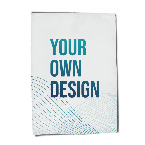 Rektangulært plakat lavet af polyesterstof eller vandtæt stof. Banneret er syet hele vejen rundt med en kant. Designet til at blive lavet vandret, men du kan tilpasse det lodret ved at vælge bredde og højde i henhold til de mål, du har brug for. Plakatets tekstiloverflade kan trykkes med farver og/eller design efter eget valg.