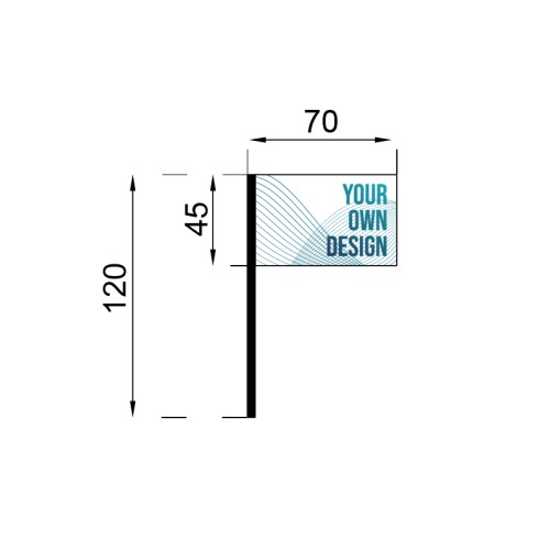 Flag with pole, also called hand flag, ideal for demonstrations. Rectangular in shape, it is made horizontally with various sizes available (see technical data sheet). Made of polyester fabric, it is made without stitching all around and has a sheath for inserting a pole to facilitate its use. The textile surface of the flag can be customised with colours and/or designs of your choice. The pole is included with the purchase of the flag.