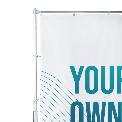 Single rectangular flag made vertically in polyester fabric. It has perimeter reinforcement tape, 4 eyelets at the top and 8 eyelets on the left side, to make it easier to attach it to the telescopic flagpole. Customise the textile surface of the flag with colours and/or designs of your choice. Due to its composition, it can be used both indoors and outdoors.