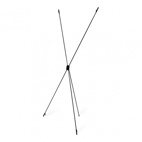 Teline koostuu viidestä mustasta hiilikuitutangosta, jotka on yhdistetty keskiosaan, joka toimii saranana.