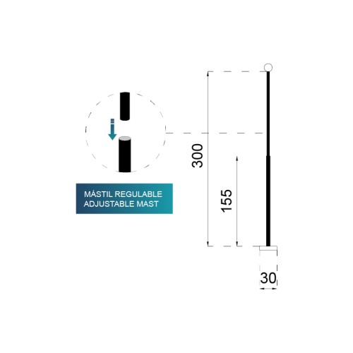 Sa hauteur peut être réglée de 155 cm à 300 cm.