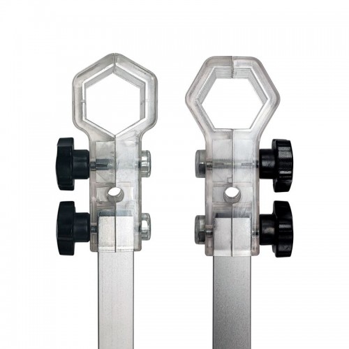 Mât en aluminium gris métallisé, détachable en 3 ou 4 sections avec des poignées fixes en plastique dur translucide vissées aux extrémités pour l'attacher aux pieds de la tente. Mesures: - 3 mètres (recommandé pour la tente 3x3m ou pour le côté 3m de la tente 3x4,5m ou 3x6m.). - 4,5 mètres. |