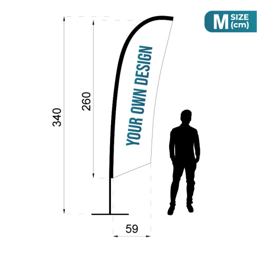 Fly Banner Feather, også kjent som Seil eller Beach Flag Surf, er en Fly Banner med flagg formet som et surfebrett. En av de største fordelene er at den gir mer plass på flagget for utforming av budskapet som skal kommuniseres. Du kan velge mellom standardversjonen eller dobbeltsidig versjon, som gjør det mulig å tilpasse to reklamebudskap. På denne siden kan du se forskjellene mellom de to versjonene.