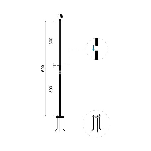 Flaggstangen har en høyde på 6 meter og en diameter på 6,5 cm. Den består av to aluminiumsseksjoner som er hermetisk skjøtt sammen.