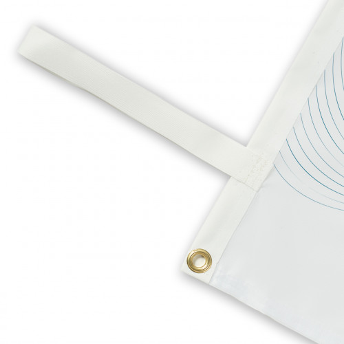 - A bandeira, feita de tecido 100% poliéster de 115 g/m², é resistente à água e ao ar.