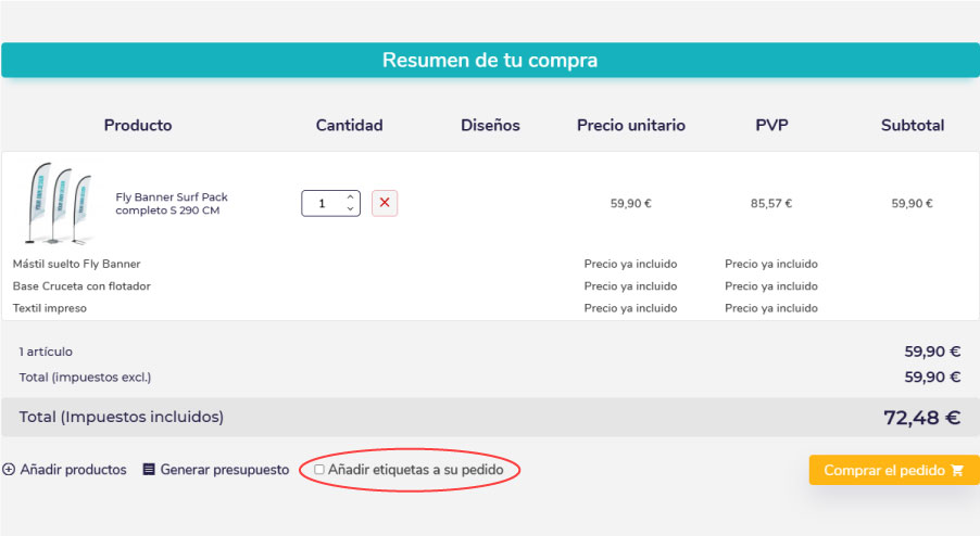 During the cutting and making up, we will print the label and we will make it to the product, so that the design you have chosen on your label is always visible in the lower corner of the label, adapting it to the characteristics of the product in question.