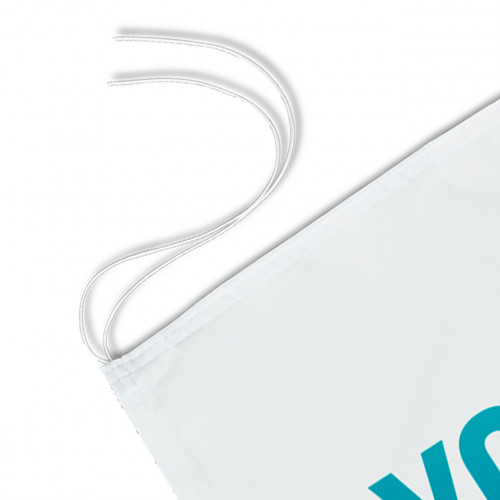 Rektangulär flagga tillverkad av polyestertyg. Den har ett dubbelt rep på ca 10 cm i de fyra hörnen för att underlätta knutning. Du kan välja bredd och höjd efter de mått du behöver. Textilytan på flaggan kan anpassas med färger och/eller mönster som du själv väljer.