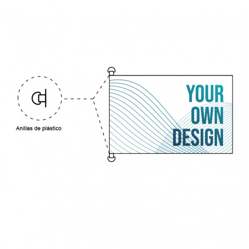 The flag can be made with: - Fabric is 100% polyester with a weight of 115 g/m². Weave: 50% weft and 50% warp with a 3-thread mesh. - Fabric made of 130 g/m² satin fabric, specially designed for indoor use.